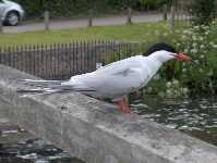 Ponavadi je zgoraj siva, po trebuhu bela, ima značilno črno "kapo" in rdeče noge, kljun je oranžnordeč s črno konico. Hrano išče med potapljanjem ali pa jo pobira s površja vode. Gnezdi v kolonijah. |