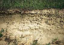 Prištevamo jo med majhne lastovke. Trebuh in grlo ima belo, na prsih pa pas rjavega perja. Gnezdi v peščenih stenah ob rekah.